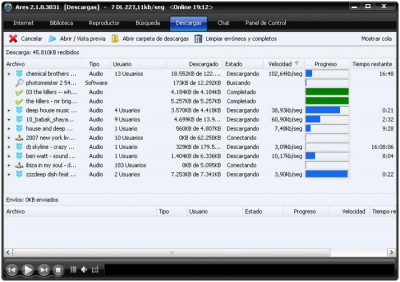 Ares 2.1.1 es la última versión lanzada del popular y mundialmente conocido cliente P2p Ares, la versión Ares 2.1.1 ha sido lanzada déspues de no mucho tiempo que ha sido lanzada la versión 2.1.0 cosa que no fue asi como el largo tiempo que tuvo que pasar de la versión 2.0.9 a la versión 2.1.0. Disfruta de Ares para encontrar, descargar y compartir con otros usuarios cualquier archivo digital incluyendo imágenes, audio, vídeo, software, documentos, etc. La última versión soporta protocolo BitTorrent y estaciones de radio Shoutcast.